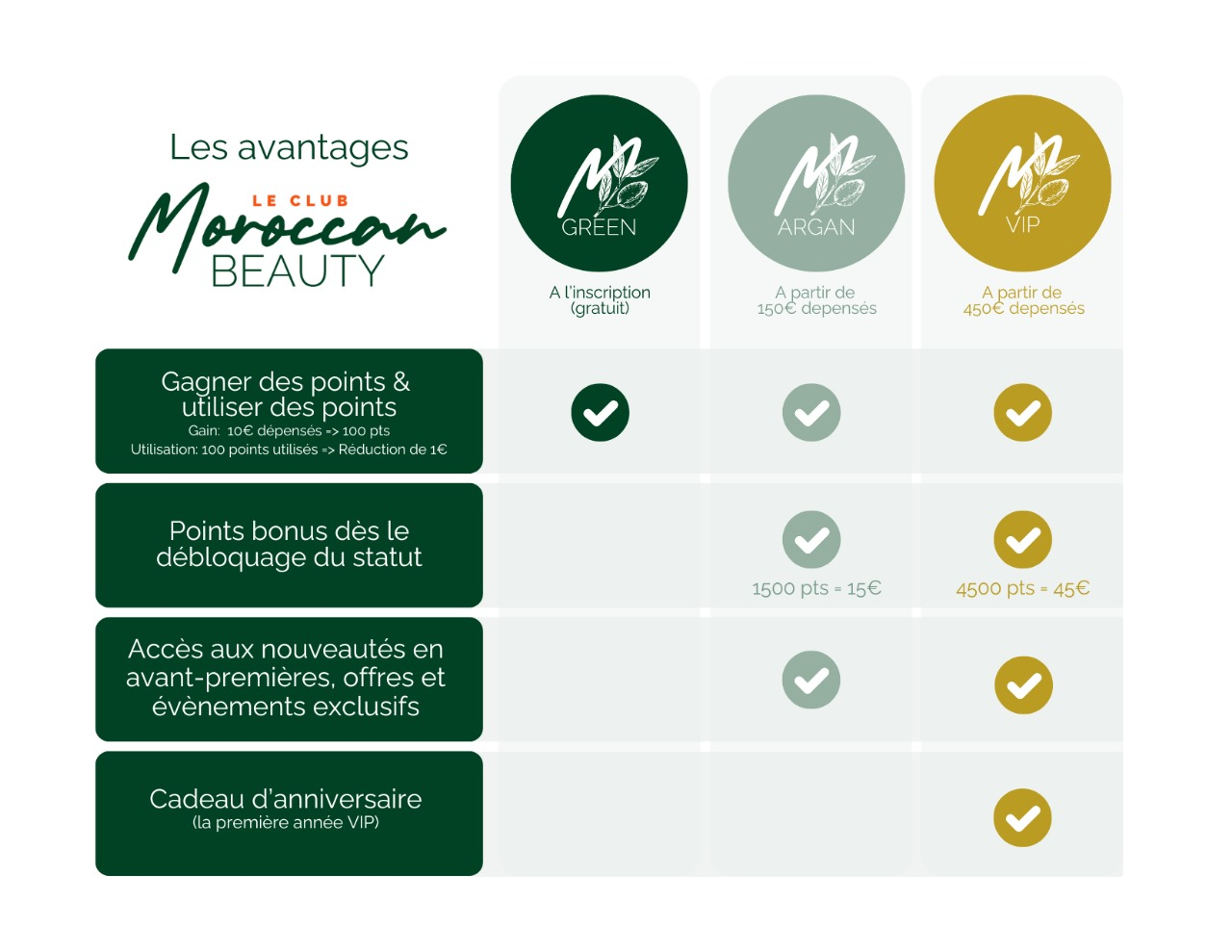 Les points peuvent être utilisés uniquement sur moroccanbeauty.co.
